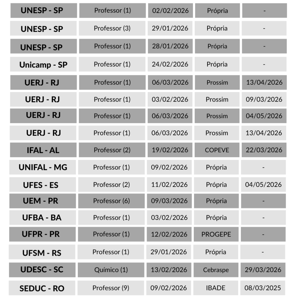 Concursos abertos para Profissionais da Química
