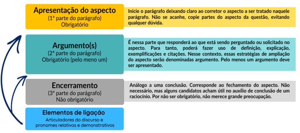 ➡️ Dedique, então, um parágrafo específico para cada item ou aspecto apontado/solicitado no enunciado.