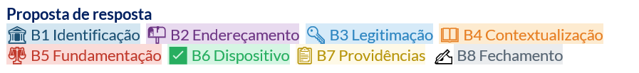 | ⚖️ B5 | Fundamentação | Base legal + análise jurídica + requisitos (bloco que mais varia) |