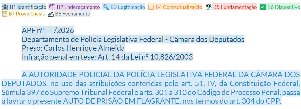 As peças técnicas de polícia judiciária pertencem ao gênero jurídico-administrativo — são documentos que formalizam atos da autoridade policial com consequências jurídicas reais. Não estamos falando de um texto qualquer: uma peça dessas pode determinar a prisão de alguém, a busca em uma residência, o sequestro de bens ou a conclusão de uma investigação criminal.