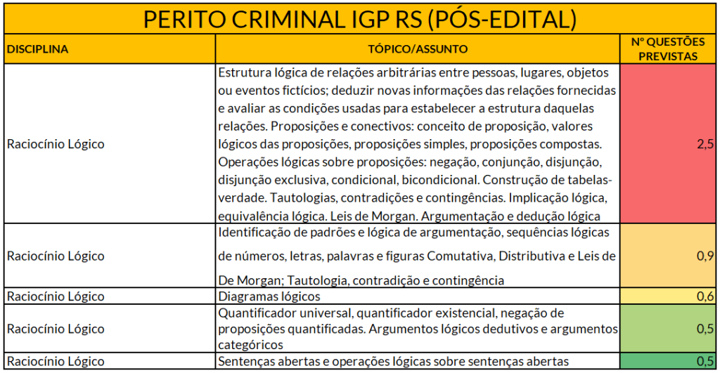 Mentoria e Monitoria Científica Concursos – Perito criminal IGP RS Raciocínio Lógico